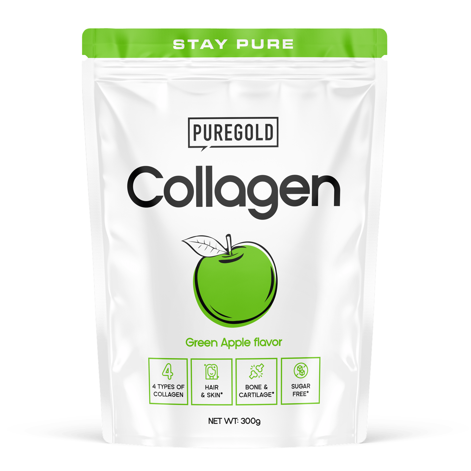 Collagen Marha kollagén italporPure Gold Collagen ízesített hidrolizált marha kollagén italpor hozzáadott vitaminokkal, cinkkel, szelénnel és édesítőszerekkel.
