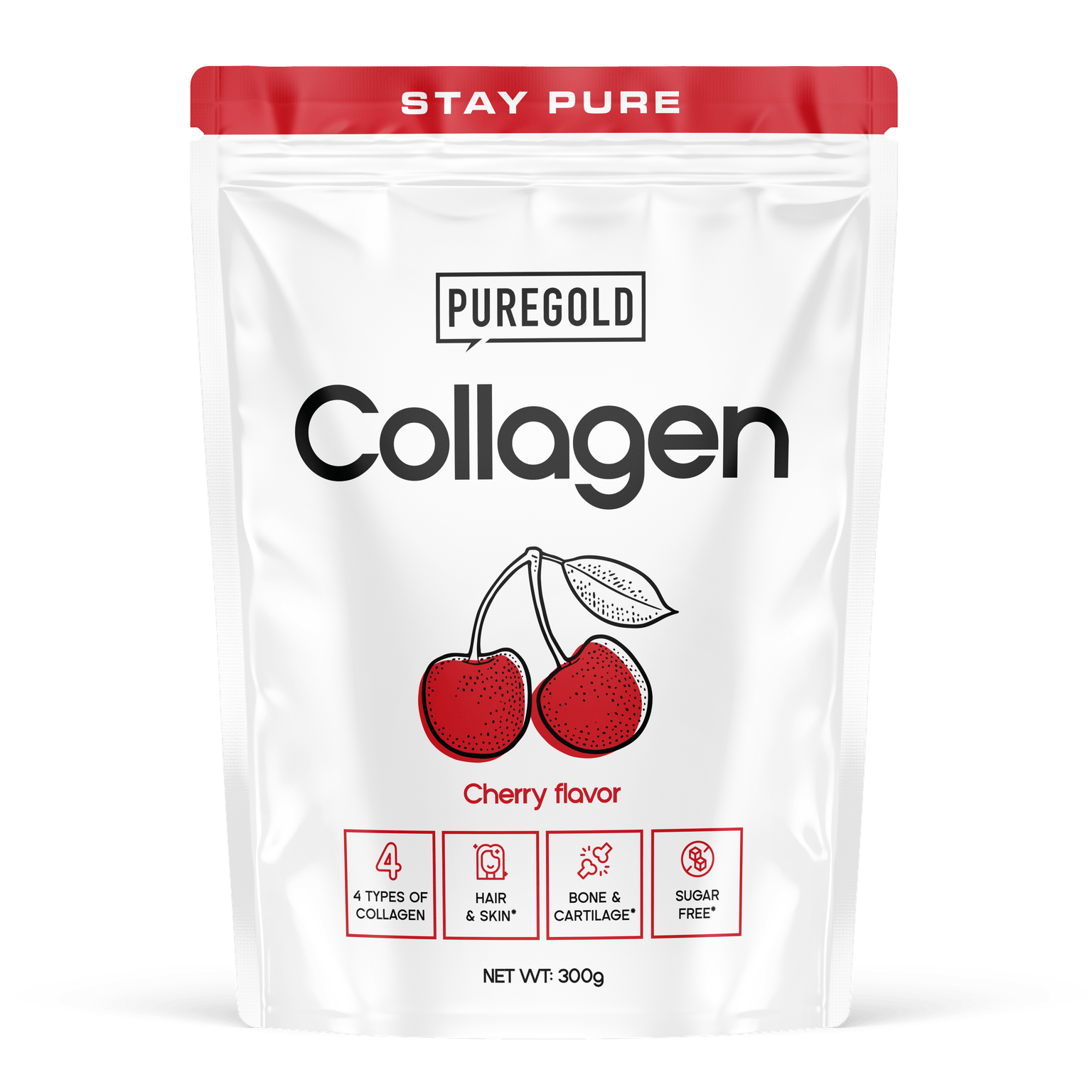 Collagen Marha kollagén italporPure Gold Collagen ízesített hidrolizált marha kollagén italpor hozzáadott vitaminokkal, cinkkel, szelénnel és édesítőszerekkel.