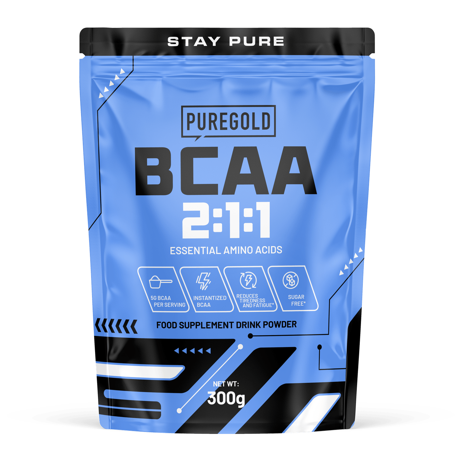 BCAA 2:1:1Aminosav étrend-kiegészítő italporPure Gold BCAA 2:1:1 ízesített étrend-kiegészítő italpor hozzáadott aminosavakkal, B6-vitaminnal és édesítőszerekkel.