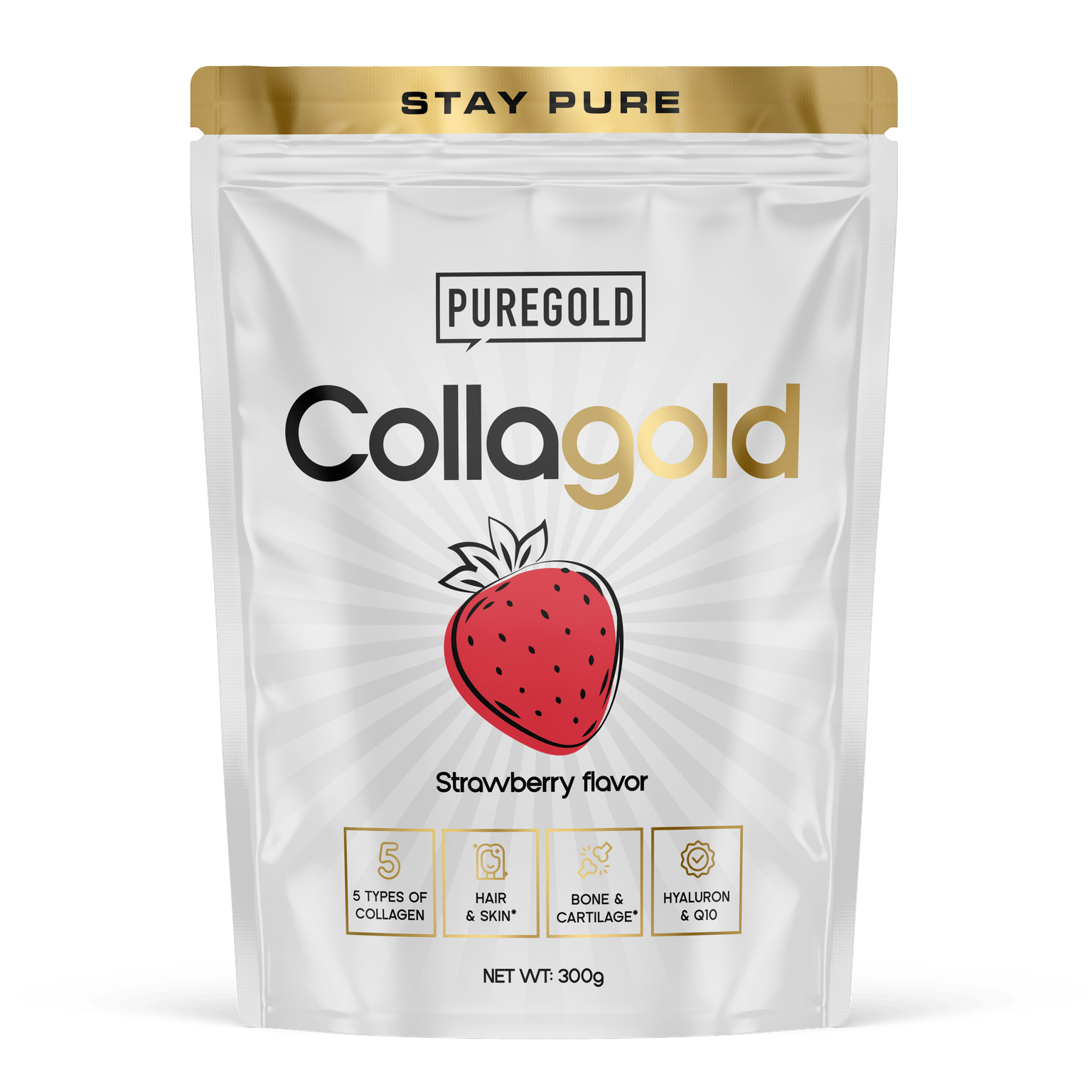 CollaGoldKomplex kollagén italporPure Gold CollaGold ízesített hidrolizált marha és tengeri halkollagén italpor hozzáadott hidrolizált csirkeporc porral, tojáshéjhártya-hidrolizátummal, vitaminokkal, cinkkel, szelénnel és édesítőszerekkel.